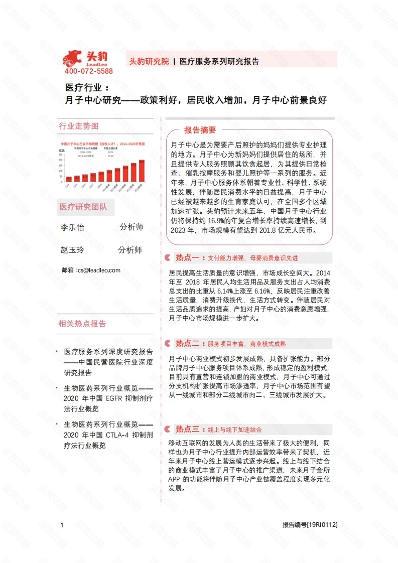 【头豹研究院】医疗行业:月子中心研究——政策利好,居民收入增加,月子中心前景良好