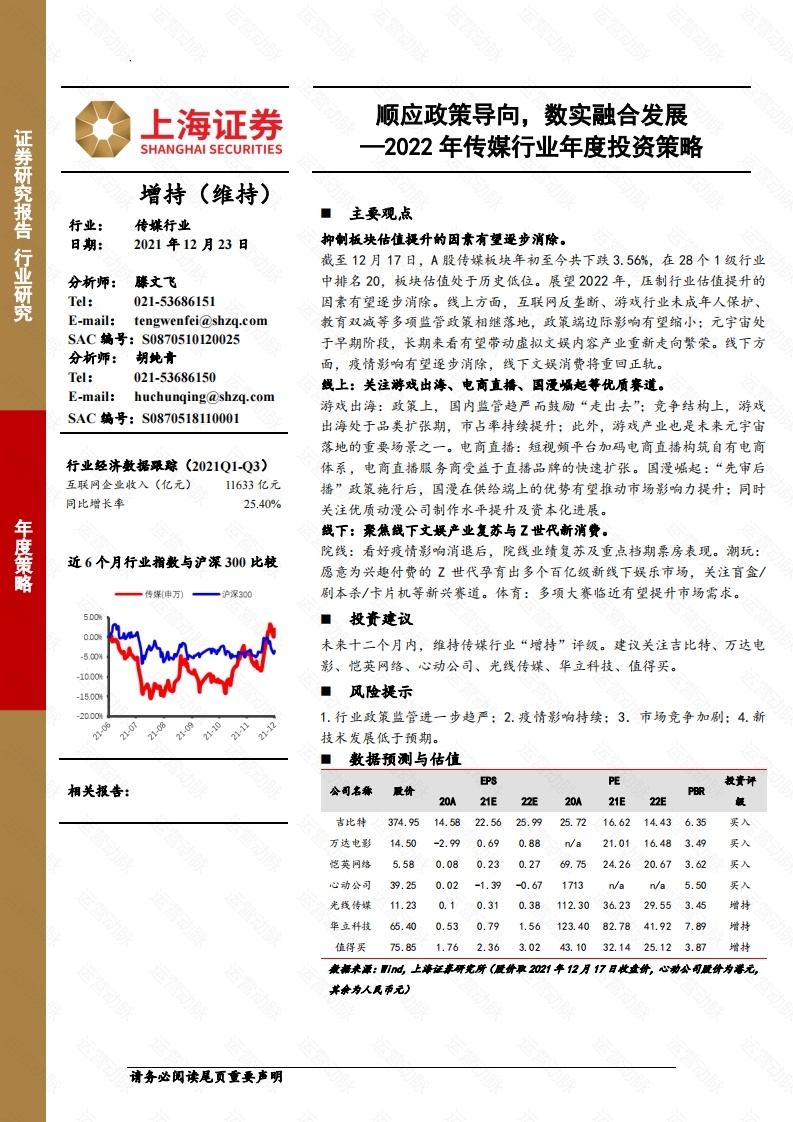 2022年传媒行业年度投资策略:顺应政策导向,数实融合发展-上海证券-42页