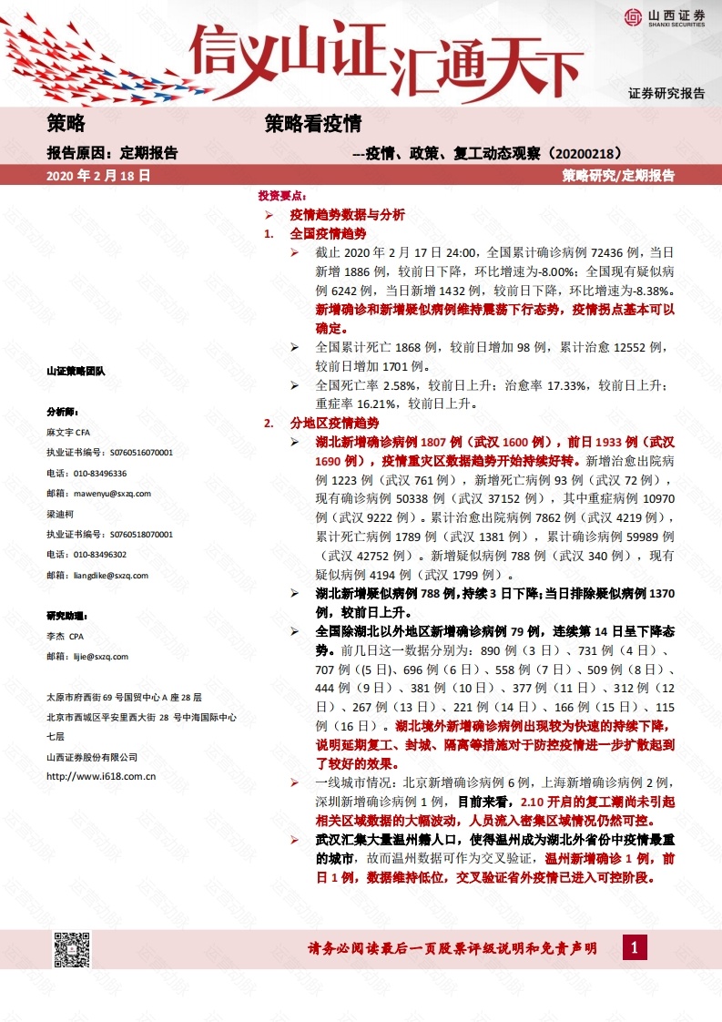 首页研究报告政策法规医药健康策略看疫情:疫情、政策、复工动态观察