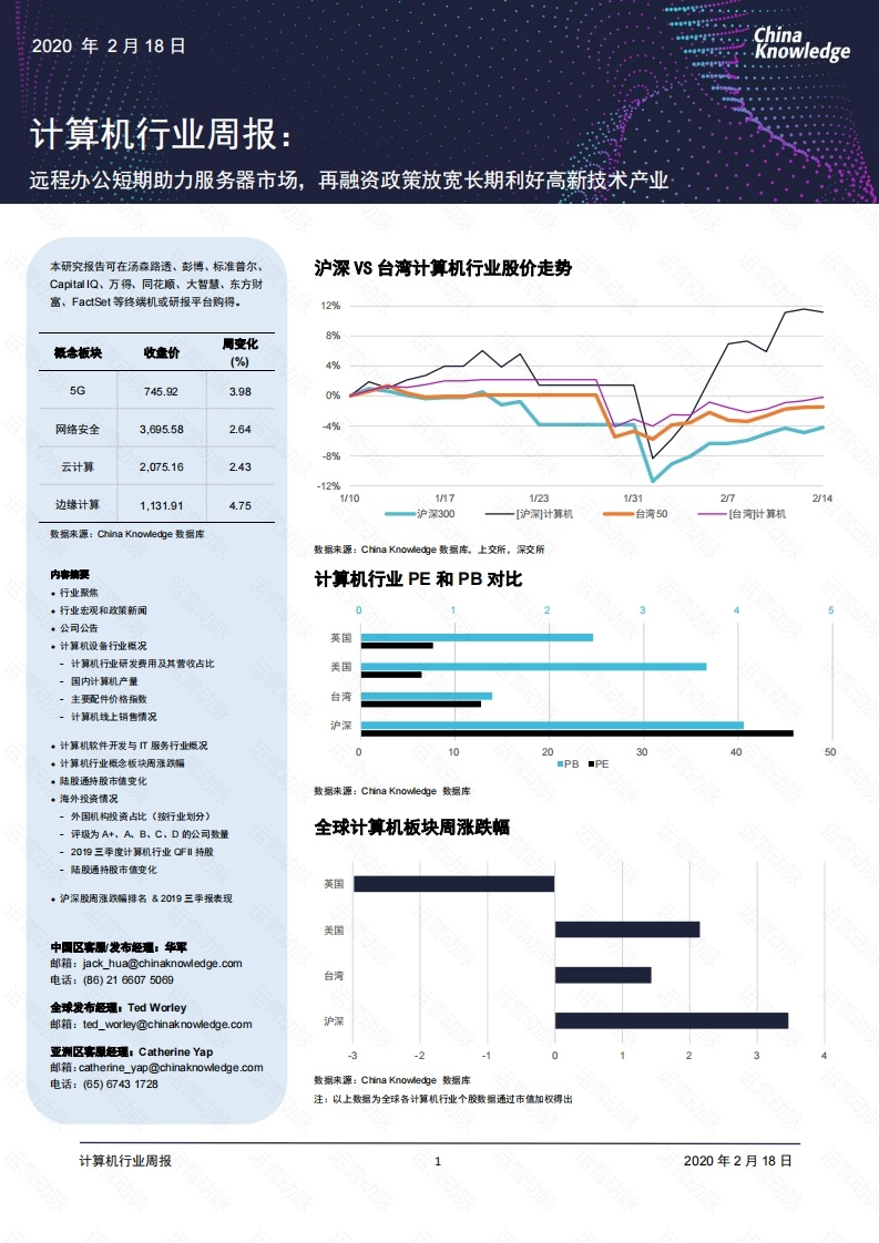 首页研究报告政策法规信息科技计算机行业周报:远程办公短期助力服务器市场,再融资政策放宽长期利好高新技术产业