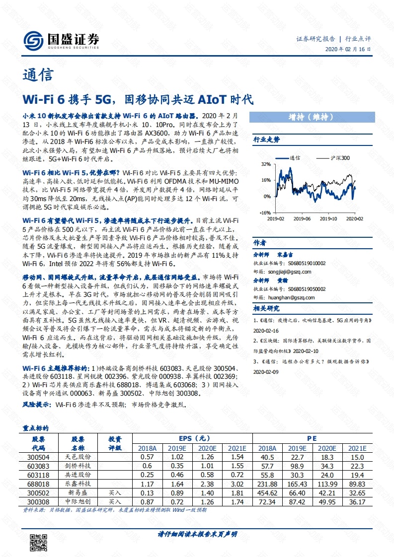 首页研究报告行业研究人工智能通信行业点评:Wi-Fi6携手5G,固移协同共迈AIoT时代