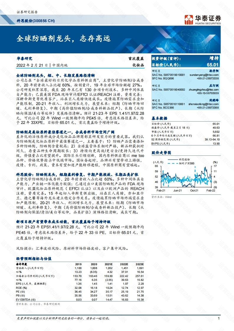 首页研究报告机构研究消费经济科思股份:全球防晒剂龙头,志存高远-华泰证券-30页