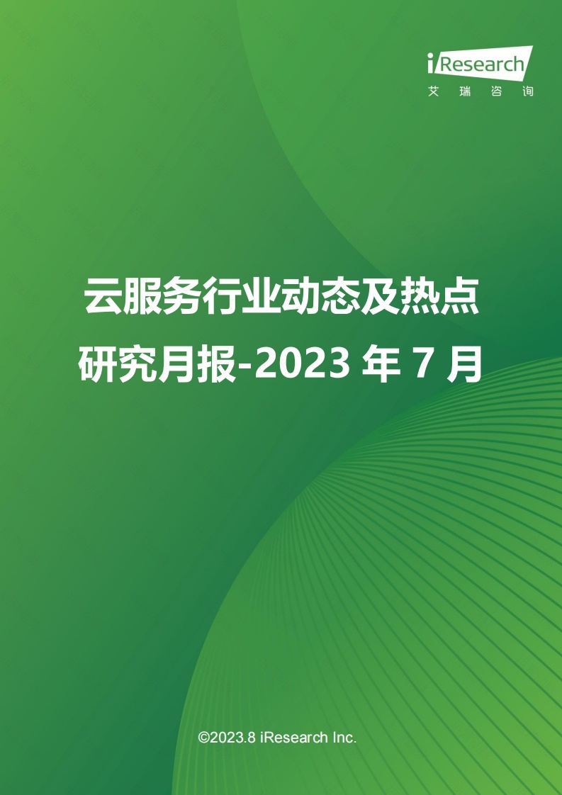 艾瑞咨询:云服务行业动态及热点研究月报-2023年7月