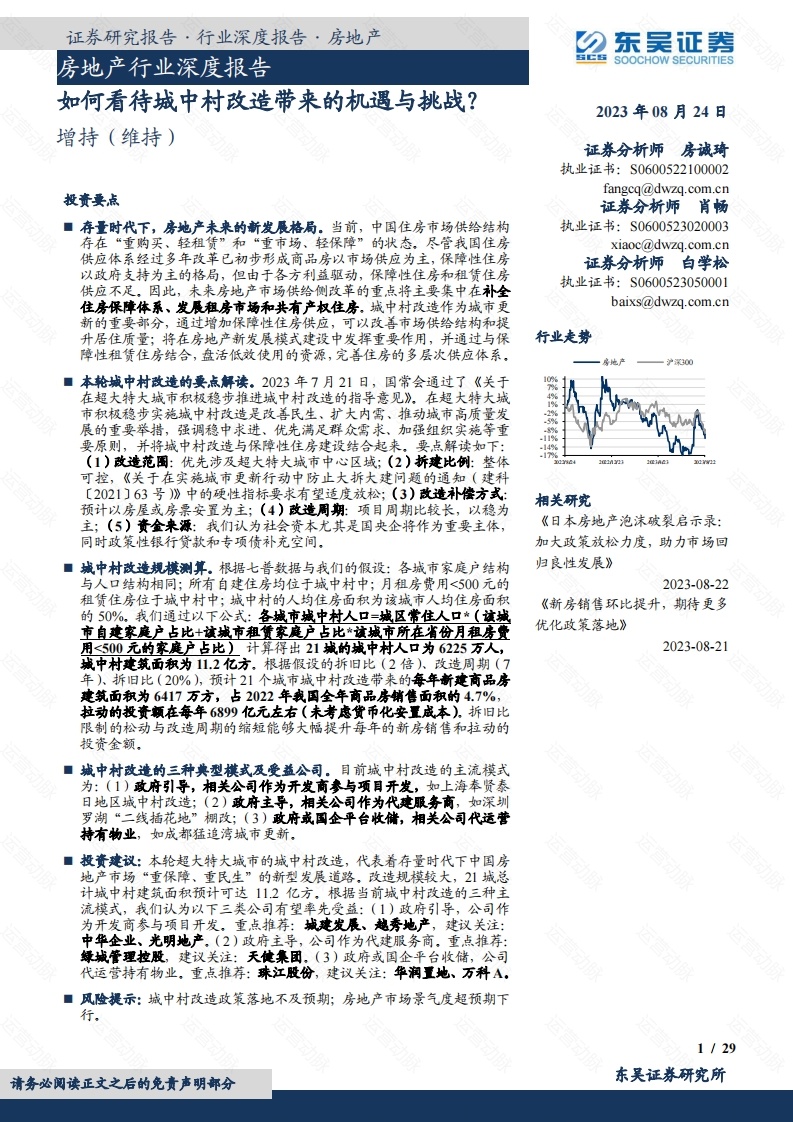首页研究报告行业研究地产建筑东吴证券:房地产行业深度报告-如何看待城中村改造带来的机遇与挑战?