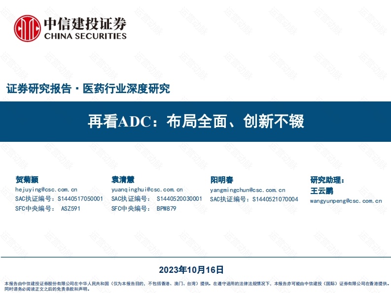 首页研究报告行业研究医药健康医药行业深度研究:再看ADC,布局全面、创新不辍