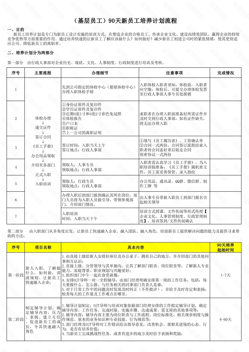 90天新员工培养SOP(基层员工版)