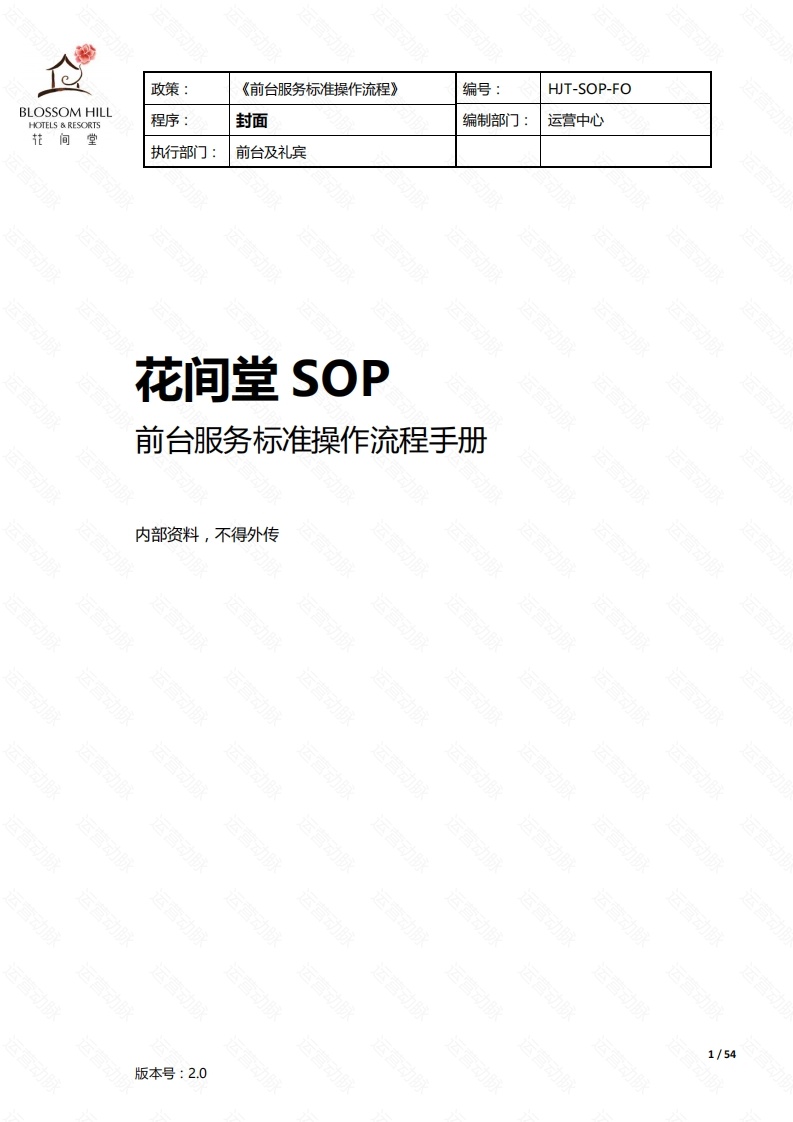 首页职场资料SOP模板酒店SOP花间堂 SOP前台服务标准操作流程手册