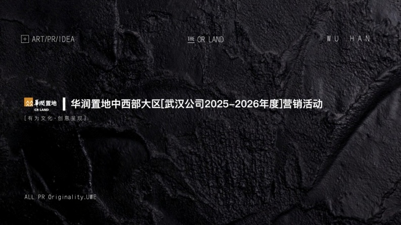 +ART/PR/IDEATHE CR LAND华润置地中西部大区[武汉公司2025-2026年度]营销活动CR LAND[有为文化·创意呈现]ALL PR Originality.UWEART/PR/IDEATHE CR LAND品牌营销活动CR LAND[有为文化·创意呈现]ALL PR Originality.UWE目录Contents02044P-15P-34P-47P-84P-活动思考及概况传播建议现场呈现流程铺排伴手礼推荐12P-17P-活动主题ICON设计22P-01宣传排期0305CREATIVEARTPUBLIC RELATIONSPART-1活动思考|THINKING■华润置地中西部大区·武汉公司CR Land Midwest Region,Wuhan Company华润置地中国领先的城市综合投资开发运营商华润置地,以长江为脉,与时代共潮CR LAND作为根植中西部核心的央企地产标杆,我们以远见擘画城市天际,以匠心雕琢理想人居。澎湃如江,奔涌向前,在长江经济带的壮阔篇章中,持续书写城市发展的新传奇。CREATIVEARTPUBLIC RELATIONS[全案思路]华润置地深入武汉围绕“品牌与城市串联”这一核心命题让链接世界的华润置地,同样链接城市的脉搏通过[品牌符号]释放品牌价值及品牌温度让品牌与城市“同轴共振”,共建城市理想与远见UWES T R A T E G策略推导城市战略华润需求市民痛点D E M A N D武汉建设“国际滨水名城”政策新品“长江系”高端项目发布缺乏国际化文化深度体验物业智慧服务长江教育市民对“全球城市身份认同”渴望强化“生活方式运营商”标签渴望参与城市级事件策略推导解决方案S O L U T I ON以长江为媒介折叠世界文明将地产功能转化为艺术交互让市民成为叙事共创者华润置地央企血脉,领航枢纽,蓝色基因CR LANDWU HAN为武汉续写城市蓝图AND NEXT:,与武汉共建/未来无限可能CREATIVEACR LANDCREATIVEARTPUBLIC RELATIONSFOR BETTER CITY·与世界共享长江蓝共写·一座城市的蔚蓝新章深度融合长江的在地性与世界的多元性以精致仪式感重塑武汉“全球生活目的地”标签,让华润成为城市国际化生活的叙事主角」全盘思考,我们该怎么做?[]传播维度-话题塑造,概念释放[2]品牌维度-品牌符号,加强记忆[3]价值维度-仪式诠释,价值落位CR LAND|全盘思考,我们该怎么做?活动前一周活动节点后续宣发点723传播维度品牌维度概念落位第一战役:传播第二战役:品牌价值传达第三战役:概念落位事件营销:话题塑造品牌价值符号化,现场呈现流程、仪式亮点释放释放蓝色愿景概念以符号化价值点塑造现场记忆点媒体矩阵长线运营,落位品牌价值CREATIVEARTPUBLIC RELATIONSPART-2传播建议|SPREAD■华润置地中西部大区·武汉公司CR Land Midwest Region,Wuhan Company