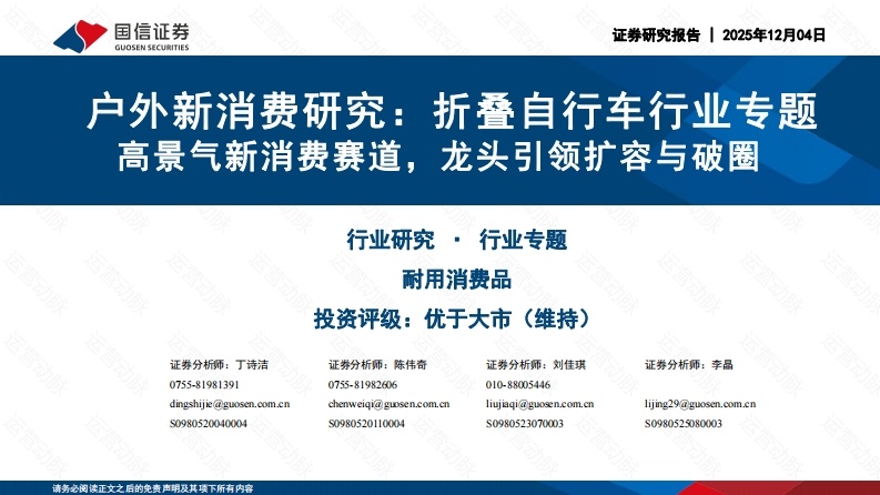 2025耐用消费品行业户外新消费研究:折叠自行车行业专题,高景气新消费赛道,龙头引领扩容与破圈-国信证券