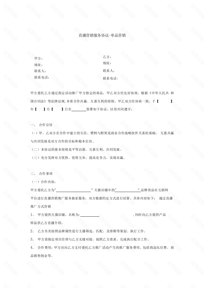 直播营销服务协议-单品营销